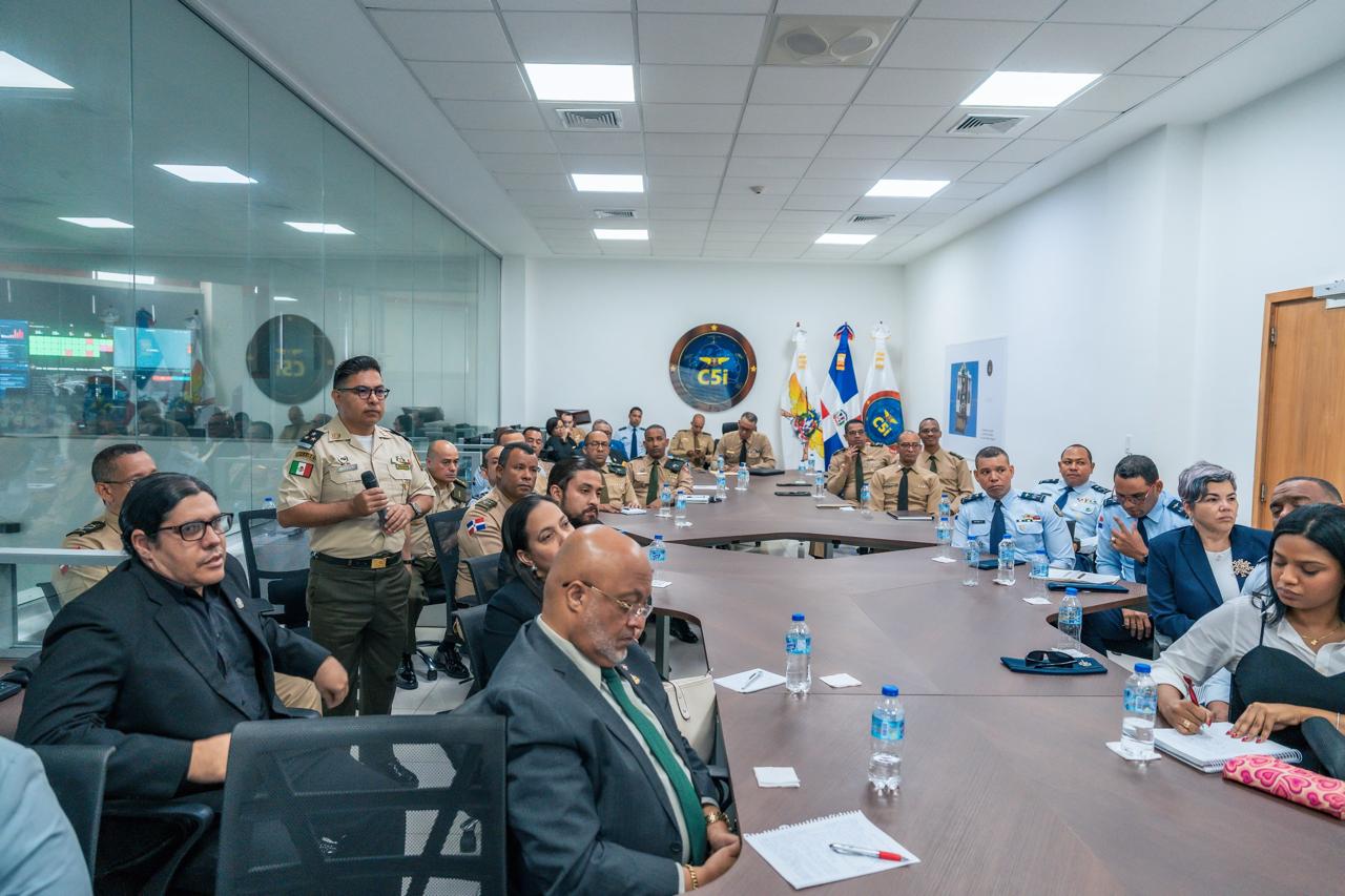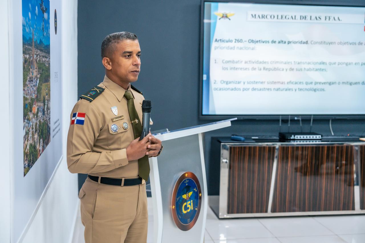 Durante la visita, los maestrantes recibieron una presentación institucional de las Fuerzas Armadas, a cargo del J-3, director de Planes y Operaciones del Estado Mayor Conjunto del Ministerio de Defensa, general de Brigada JUAN A. ALCÁNTARA CÁCERES, ERD. Del mismo modo, el director de Operaciones del C5i, coronel JOSÉ A. CASTILLO HERRERA, ERD (DEM), presentó aspectos importantes sobre la creación, misión, tareas principales y estructura organizacional de este centro; además, sobre sus capacidades tecnológicas, operativas, de ciberseguridad y ciberdefensa, de comunicaciones e inteligencia. Asimismo, los participantes de esta maestría pudieron apreciar los niveles de cooperación interinstitucional e interagencial del C5i, para la coordinación de operaciones conjuntas y combinadas de las instituciones militares y gubernamentales, en sus diferentes ejes de acción: defensa nacional, seguridad interior, seguridad ciudadana, protección civil y ciberdefensa.